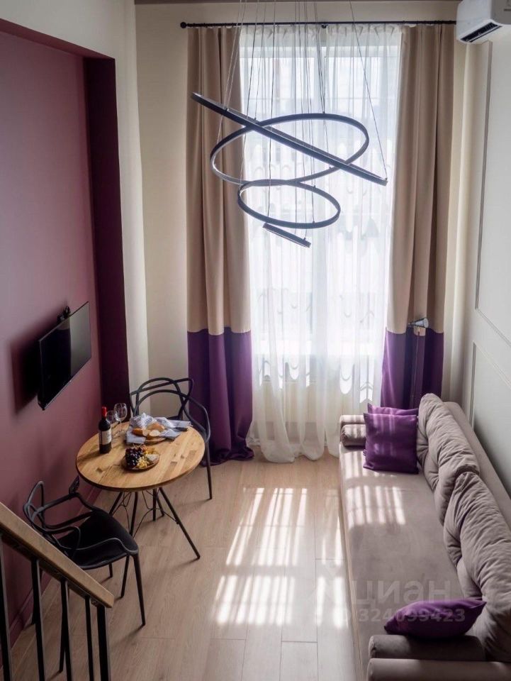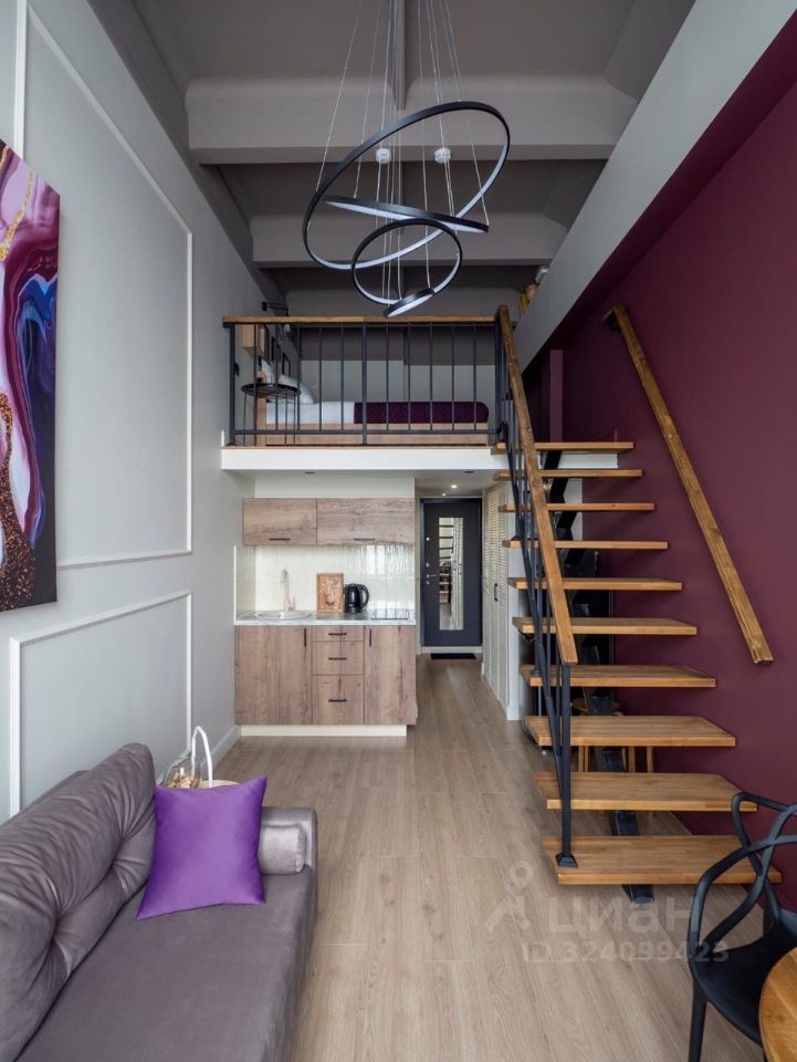 Продаются современные апартаменты с дизайнерским ремонтом, мебелью и техникой, полностью готовые к проживанию. Общая площадь 22,2 кв.м. + 10 кв.м. антресоль, потолки 4,1 м, расположены на 6 этаже.