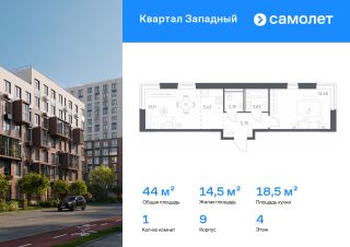 Строим кварталы для жизни с заботой о будущем. Предлагается 1-комнатная квартира комфорт-класса 43,95 кв.м в корпусе 9 на 4 этаже, в ЖК "Квартал Западный"