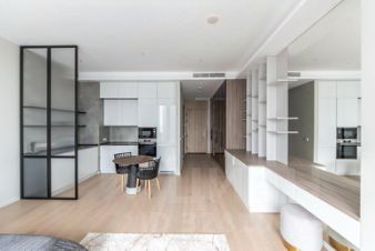В квартире выполнен дизайнерский ремонт, который подчеркивает стиль и современность интерьера. Просторная кухня идеально подходит для кулинарных экспериментов и уютных вечеров. Апартаменты оборудованы всеми необходимыми для комфортной жизни, санузел совмещенный.