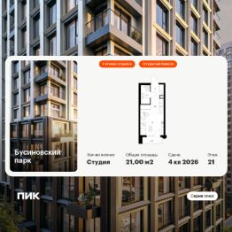 Продаётся квартира-студия площадью 21 кв.м на 21 этаже 32 этажного дома (Корпус 22.1, Секция 1) проекта ПИК Бусиновский парк. Светлый просторный подъезд на уровне земли, функциональная планировка, большие окна, c отделкой.