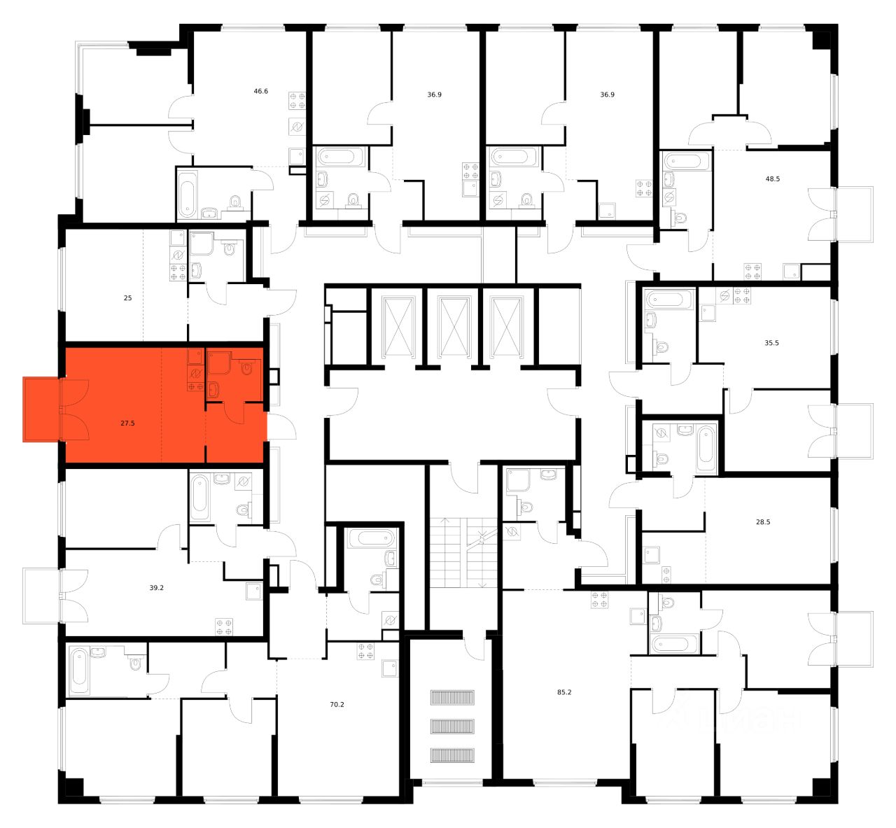 Продаётся квартира-студия площадью 27,5 кв.м на 7 этаже 12 этажного дома (Корпус 1.1.1, Секция 1) проекта ПИК Кронштадтский 9. Светлый просторный подъезд на уровне земли, функциональная планировка, большие окна, предчистовая отделка.