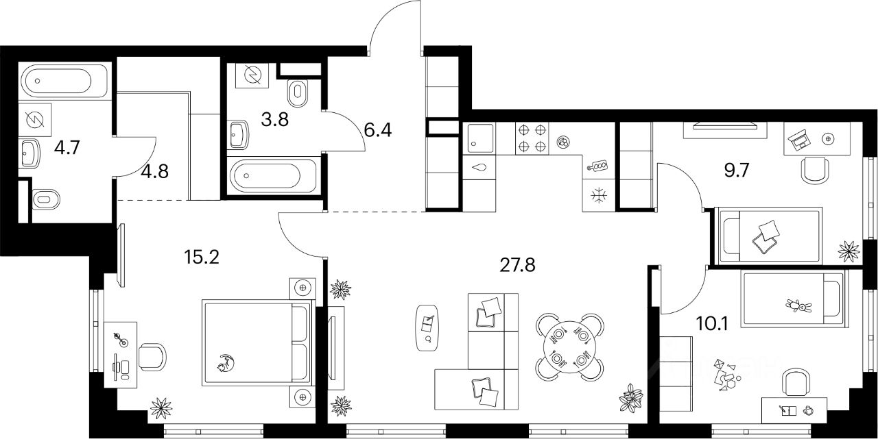 Продаётся 3-комн. квартира площадью 82,5 кв.м на 3 этаже 27 этажного дома (Корпус 4.3, Секция 3) проекта ПИК Амурский парк. Светлый просторный подъезд на уровне земли, функциональная планировка, большие окна, c отделкой.