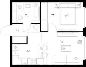 Продаётся 1-комн. квартира площадью 36,8 кв.м на 4 этаже 12 этажного дома (Корпус 1.1.1, Секция 1) проекта ПИК Кронштадтский 9. Светлый просторный подъезд на уровне земли, функциональная планировка, большие окна, предчистовая отделка.