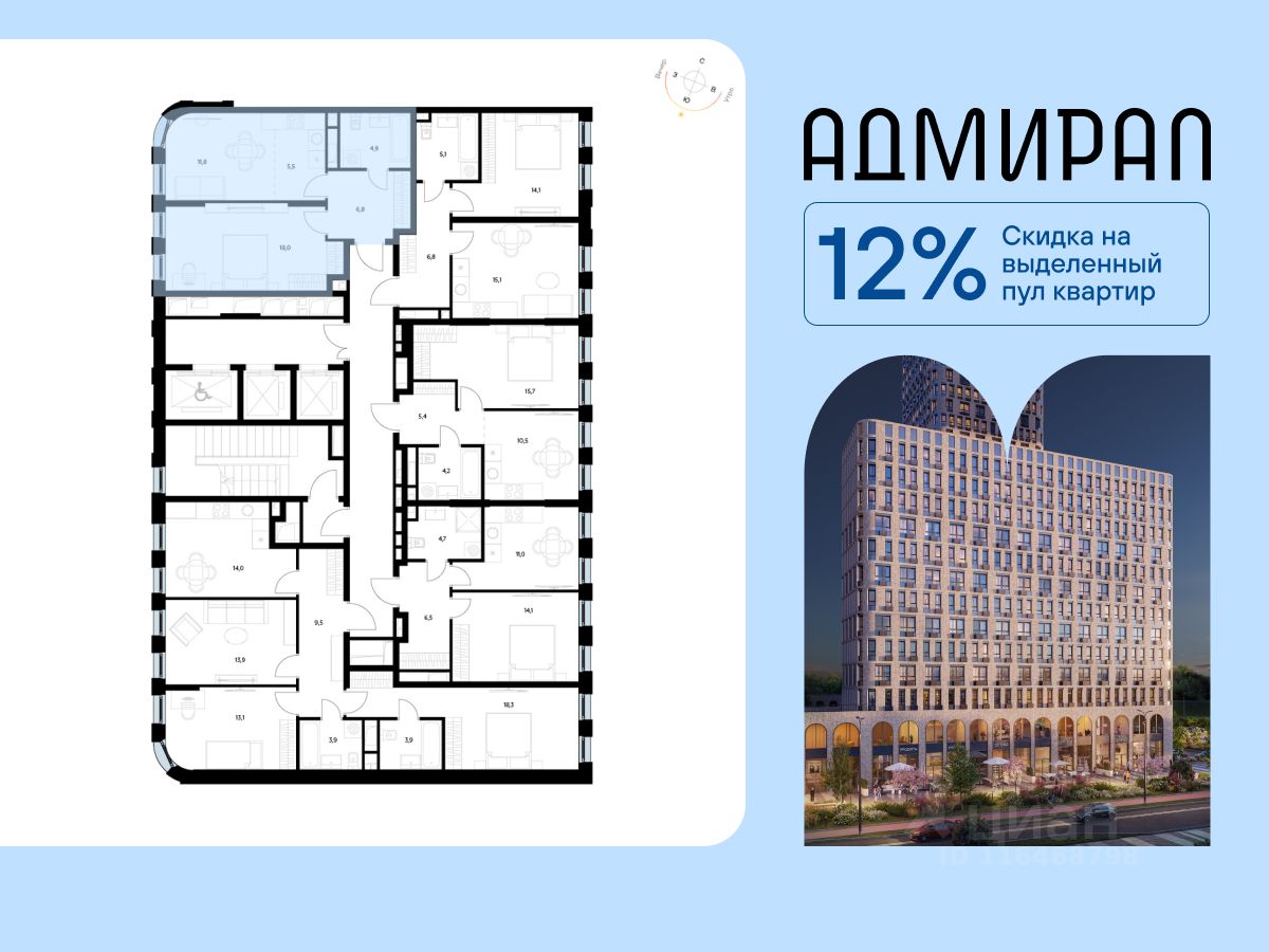 Квартира находится в корпусе жилого комплекса бизнес-класса "Адмирал", расположенного по адресу г. Москва, ул. Шоссейная, 4Д. (Застройщик - "Галс Девелопмент").