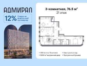 Квартира находится в корпусе жилого комплекса бизнес-класса "Адмирал", расположенного по адресу г. Москва, ул. Шоссейная, 4Д. (Застройщик - "Галс Девелопмент").