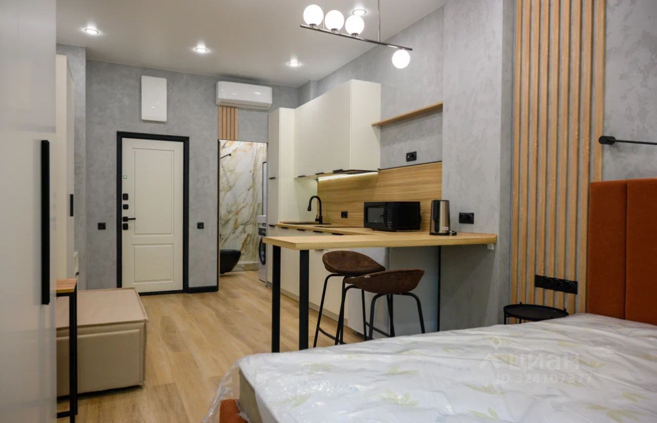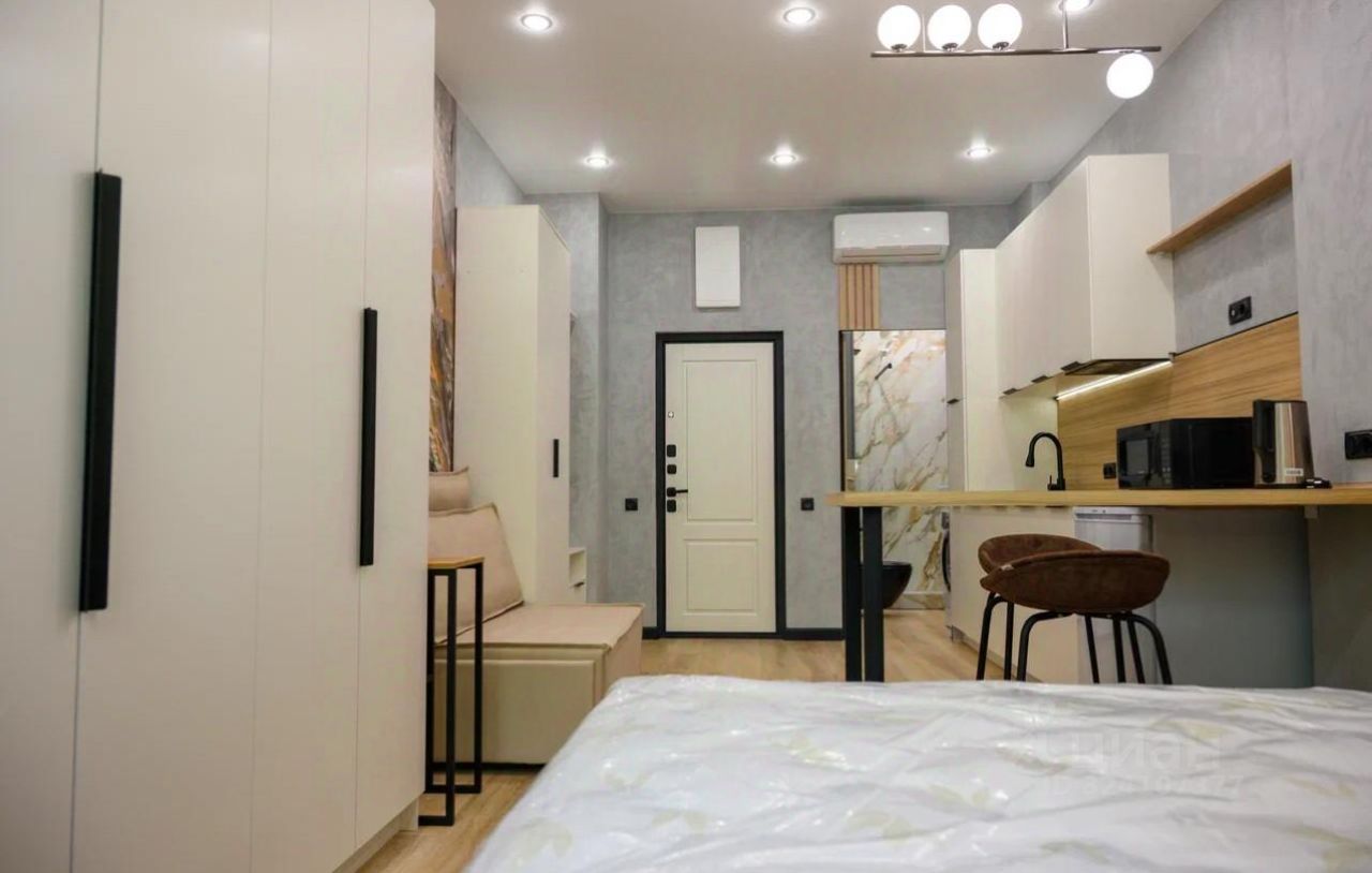 Цена студии с ремонтом. Ремонт новый, только закончили, укомплектовали мебель и технику всю необходимую для проживания / для сдачи в аренду.