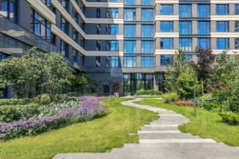 Закрытый двор без машин обеспечен круглосуточной охраной и системами контроля доступа. Двор обустроен как ландшафтное продолжение окружающих природных парков и зонирован для различных видов отдыха, детских игр, занятий спортом.