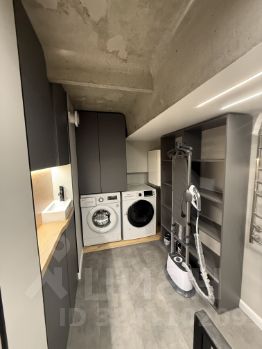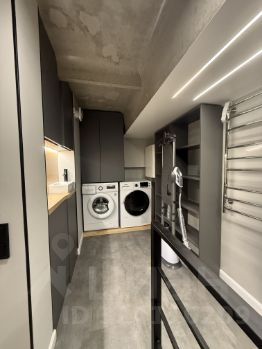 вторая антресоль — практичная постирочная зона со стиральной и сушильной машинами, дополненная гардеробной.