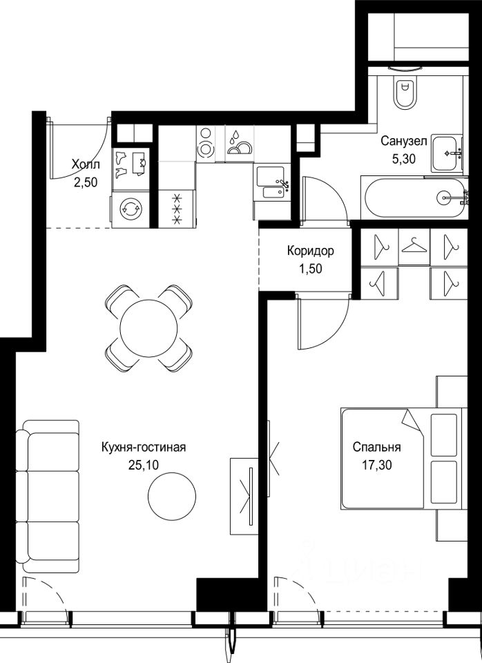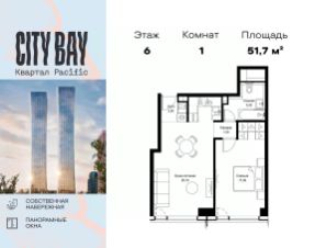 Продаётся 1-комнатная квартира общей площадью 51.70 м² без отделки в ЖК City Вау, квартале Pacific, на 6-м этаже 8 этажного дома.