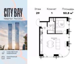 Продаётся 1-комнатная квартира общей площадью 50.80 м² без отделки в ЖК City Вау, квартале Pacific, на 29-м этаже 31 этажного дома.