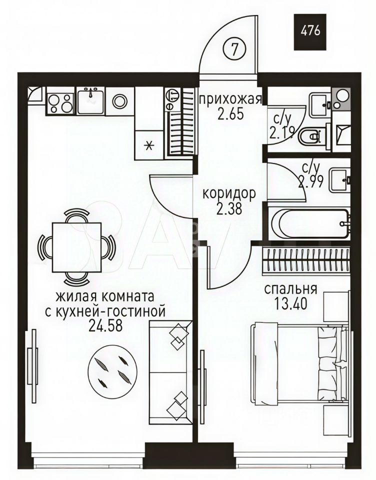 -Общая площадь - 47 м2 - функциональная планировка без лишних метров