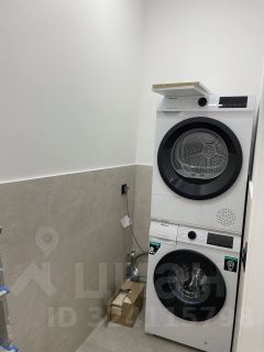 Просторная постирочная где уже установлены стиральная и сушильная машины, также при желании можно дополнить стеллажом.