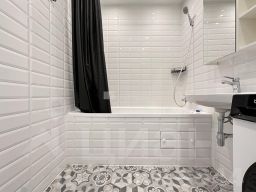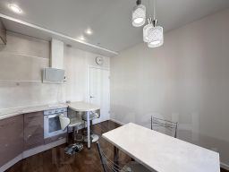 - выполнен качественный ремонт: на полу кварцвинил, в санузлах - керамогранит, натяжной потолок, стены окрашены