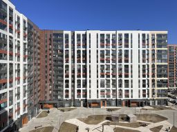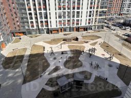 - территория двора полностью благоустроена, магазины, аптеки, кафе на первых этажах комплекса;
