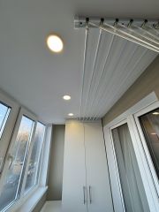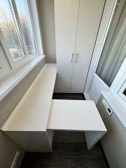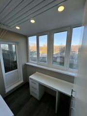 Балкон лоджия большой также новый ремонт с подогрев полом и рабочей зоной стол выдвижной тумбы и шкаф в потолок интегрированный.