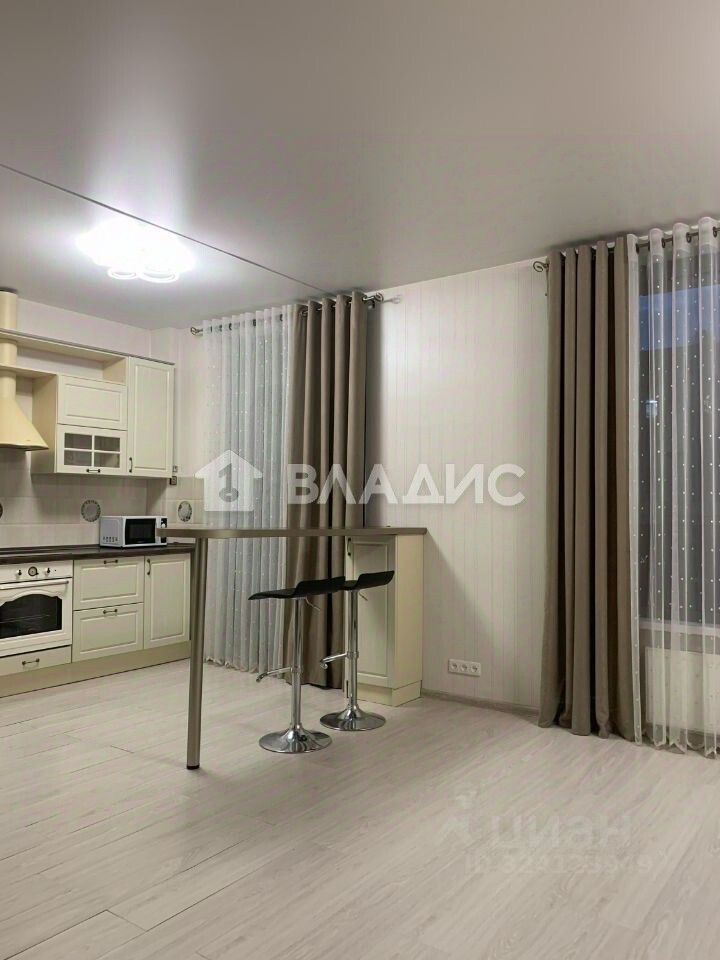 Квартира оборудована кухней-гостиной и выделенной спальной зоной. Балкон с панорамным остеклением. Мебель и встроенная техника остаётся новым владельцам.