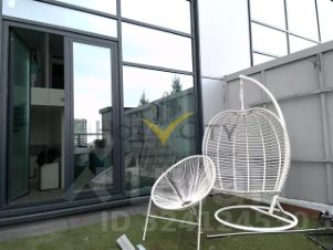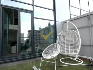 -огромная терраса требует отдельного внимания. С нее открывается вид на центр Москвы, Останкино и бассейн, на которой можно проводить вечеринки и спать летом на огромной двуспальной кровати. Создает ощущение загородного дома в центре Москвы.