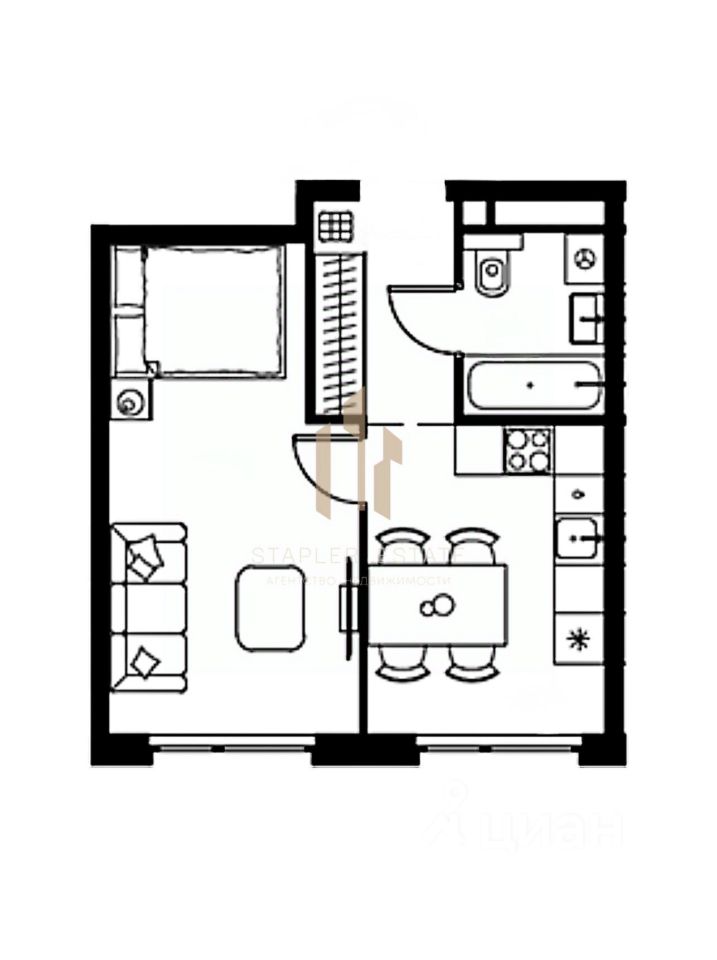 Однокомнатная квартира без отделки жилом комплексе бизнес-класса "Level Мичуринский".