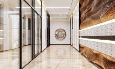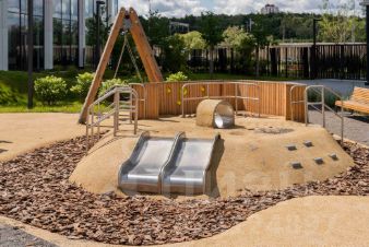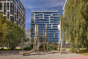 Лобби с отделкой из дерева и натурального камня с высокими потолками, активный консьерж сервис. Шестнадцать гектар собственной закрытой территории и прилегающего парка на набережной с зонами отдыха с шезлонгами, маршрутами для бега, пеших и велосипедных прогулок.