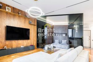 Интерьер выполнен в современном элегантном стиле, который легко подстраивается под ваш образ жизни. Планировка продумана так, чтобы пространство чувствовалось лёгким и функциональным: гостиная плавно перетекает в кухонную зону, создавая единое пространство для отдыха и встреч. Спальня оснащена удобной гардеробной, а санузел с ванной предлагает приватность и комфорт после насыщенного дня.