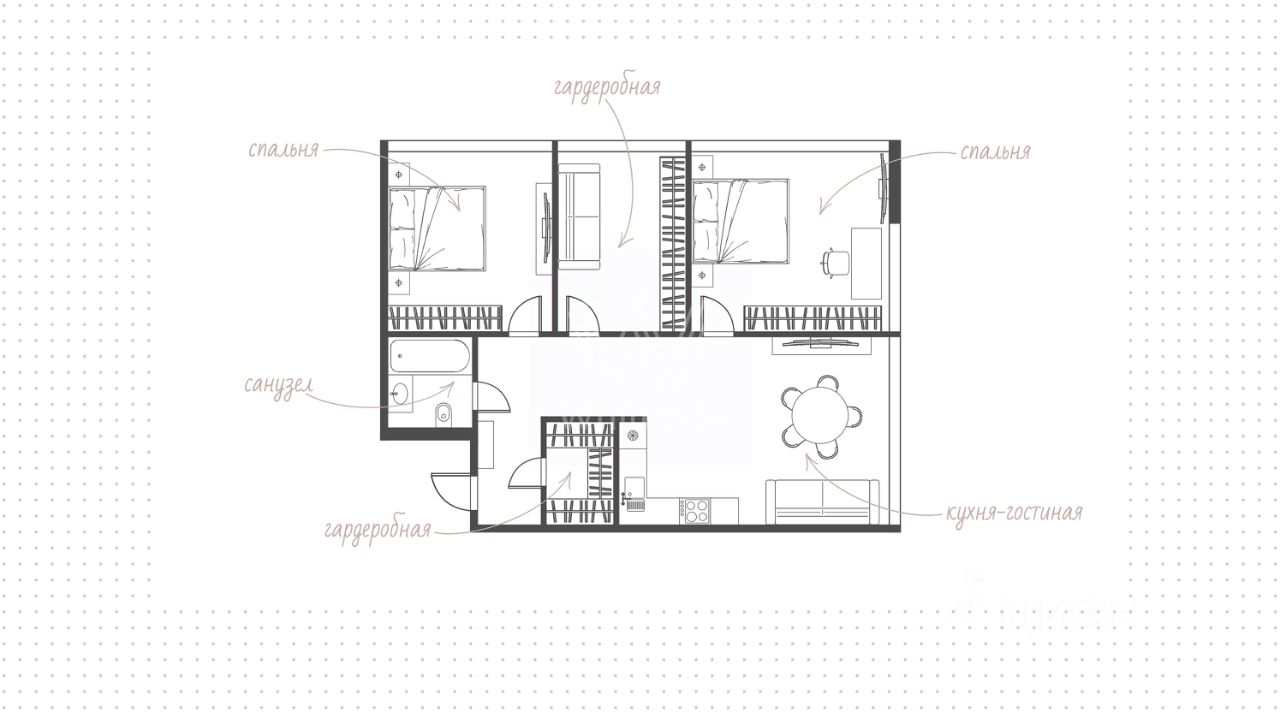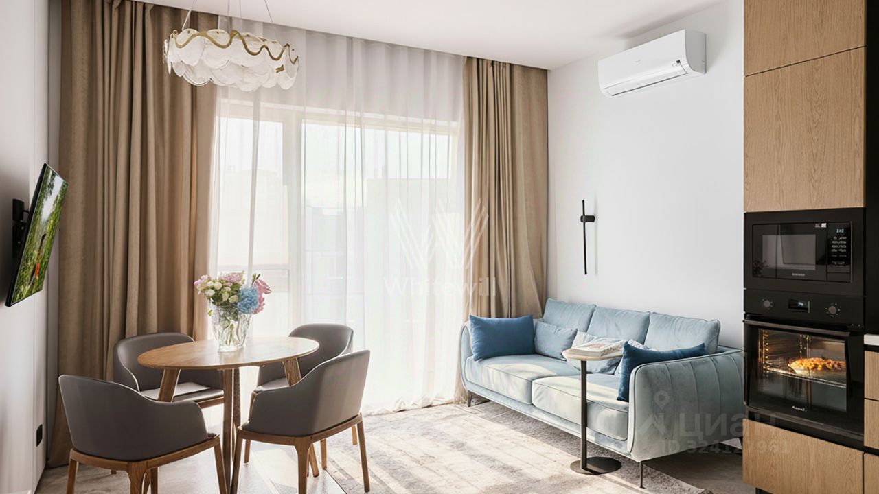 Апартаменты полностью меблированы и укомплектованы бытовой техникой. Функциональная планировка включает кухню-гостиную с обеденной зоной, 2 спальни, гардеробную с окном, ванную комнату и прихожую с гардеробной. Окна, ориентированные на две стороны света, открывают виды во двор. За дополнительную плату возможно приобрести машино-место в подземном паркинге.