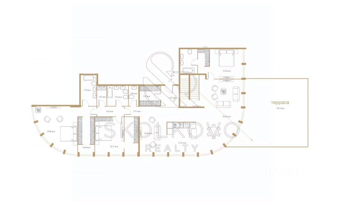Мы предлагаем возможность спланировать квартиру по вашему вкусу: просторная кухня с обеденной зоной, светлая гостиная, две мастер-спальни с индивидуальными санузлами и гардеробными, а также две дополнительные спальни и дополнительные санузлы.