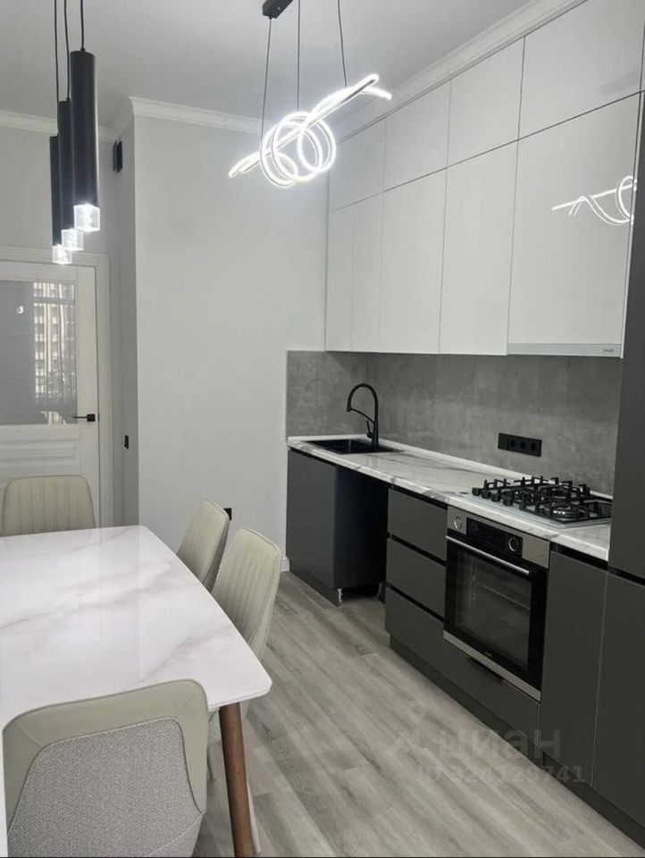 2 комнаты, площадь 77 м², кухня-гостиная, 2 спальни, санузел, прихожая, просторная планировка с функциональными зонами.