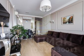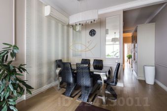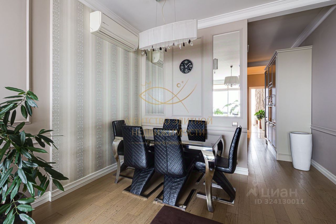 Практичная планировка: просторная гостиная с видом на город, ВТБ арену, три изолированные комнаты, одна из которых мастер спальня с собственным санузлом и гардеробной. Также есть отдельная гардеробная, гостевой санузел. В квартире сделан свежий ремонт, встроенная кухня оборудована всей необходимой техникой: двухдверный холодильник, свч печь, духовой шкаф, посудомоечная машина.
