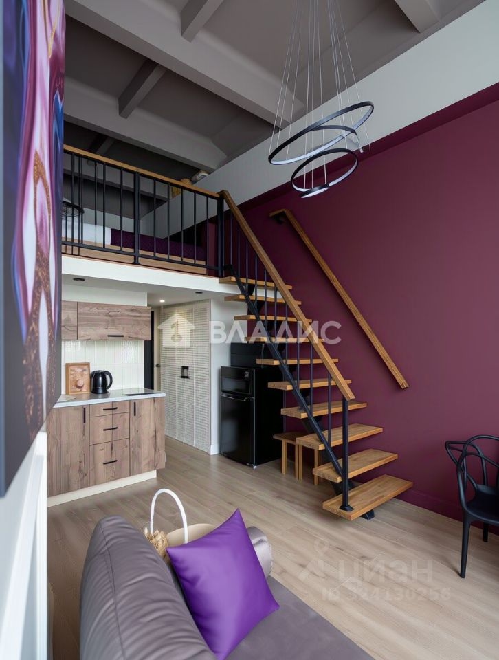 Эта студия с дизайнерским ремонтом, очень тёплая и уютная — отличное решение для молодых специалистов или студентов, а так же для молодой семьи. Высота потолков 4,1 м позволяет организовать пространство максимально комфортно, А спальня на втором этаже просторная, посмотрите сами на сколько там уютно, а так же второй этаж увеличен по полу под удобную полноценную кровать, поэтому студию можно считать полноценной "евро двушкой" с отдельной спальней на втором этаже!