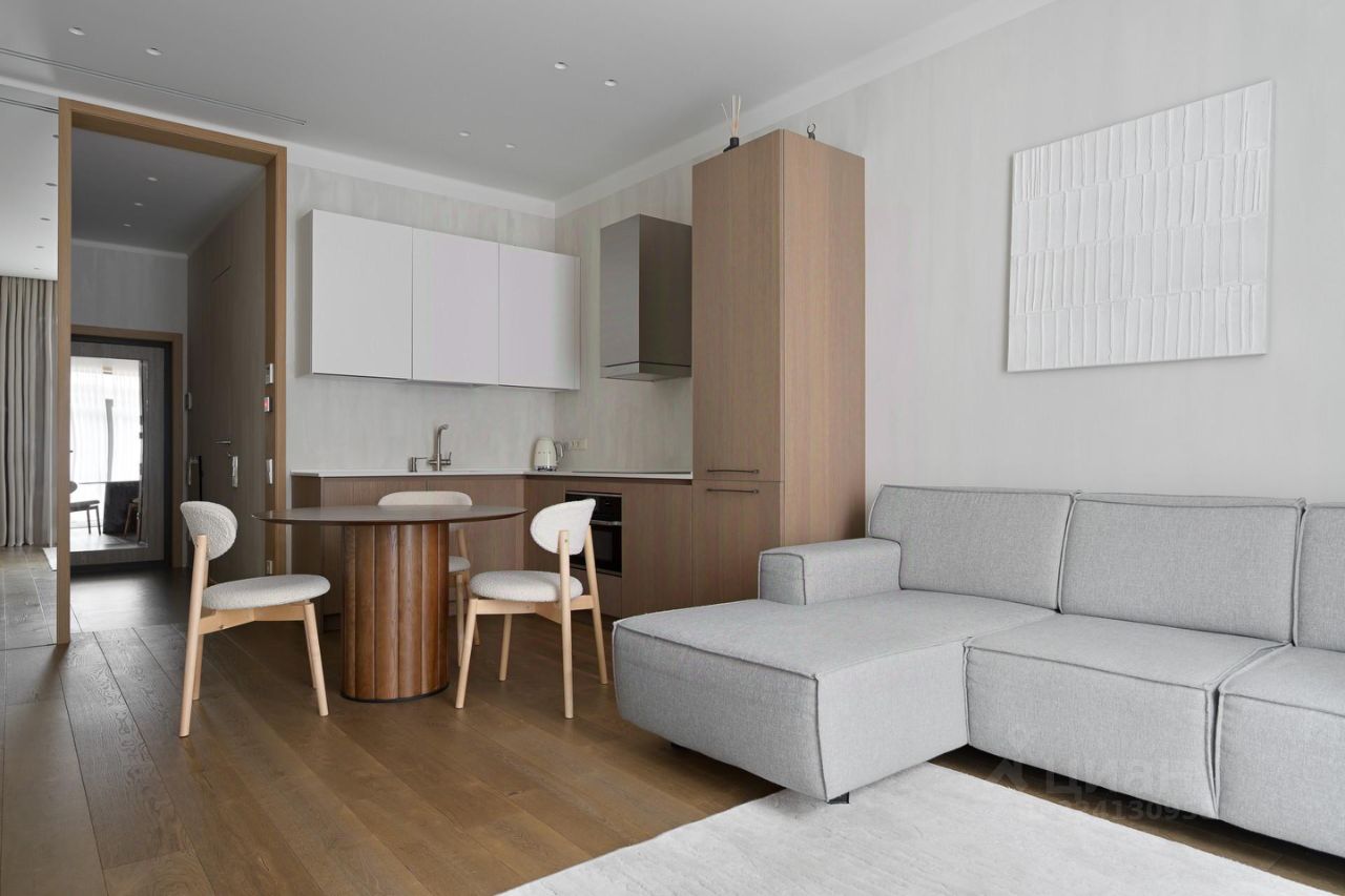 • Просторная гостиная с зоной кухни, оснащённой встроенной техникой премиальных брендов;