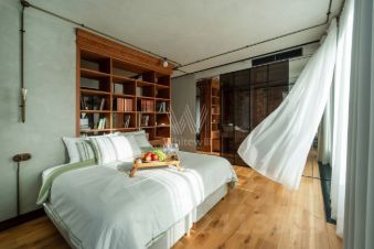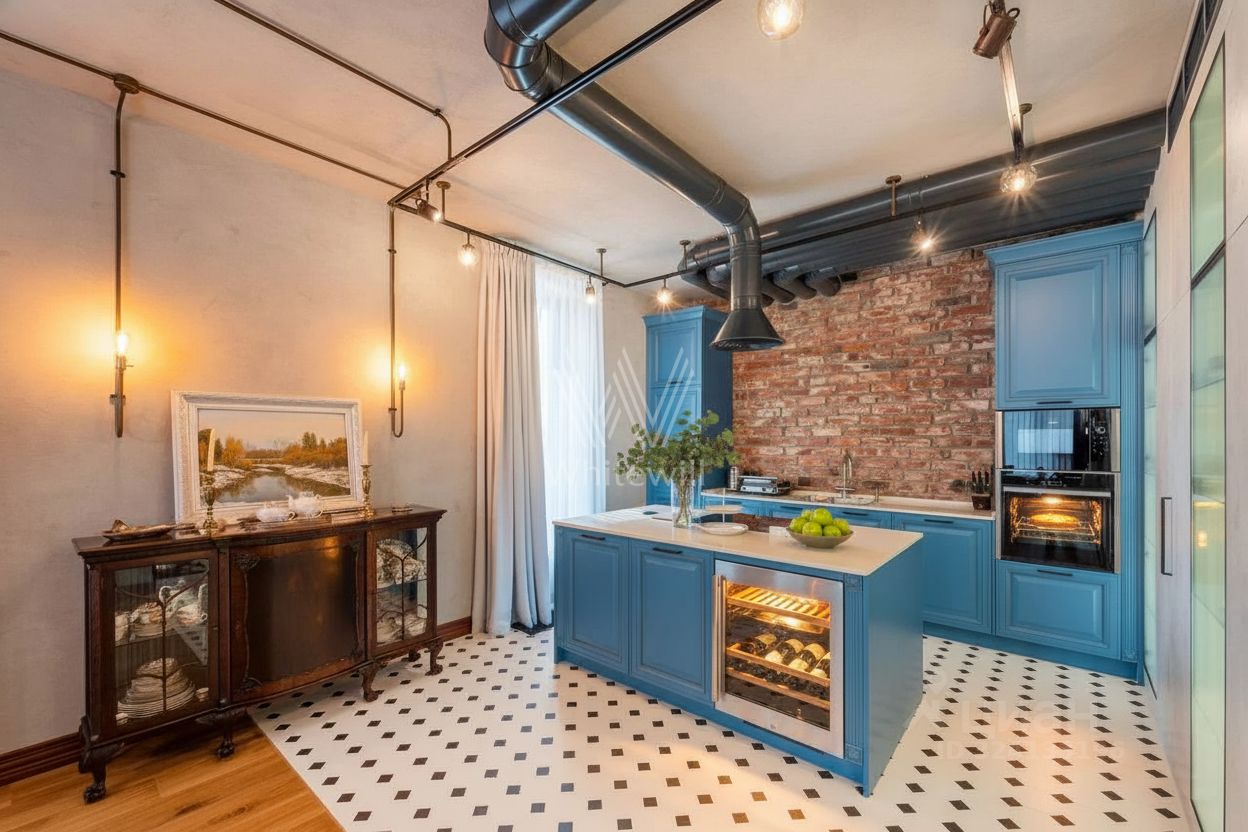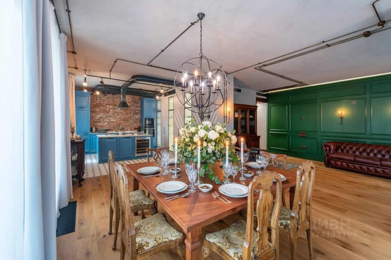 Сантехника представлена английским брендом Burlington. Функциональная планировка включает кухню-гостиную-столовую, мастер-спальню со своим санузлом и рабочей зоной, 2 детские спальни, ванную комнату, гостевой санузел и прихожую с гардеробной. Продуманы различные сценарии освещения. Изюминка квартиры — кирпичная кладка 18 века, покрытая защитным слоем лака. Благодаря панорамному остеклению и потолкам высотой 3 метра пространство наполнено естественным светом и воздухом.