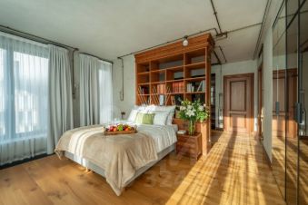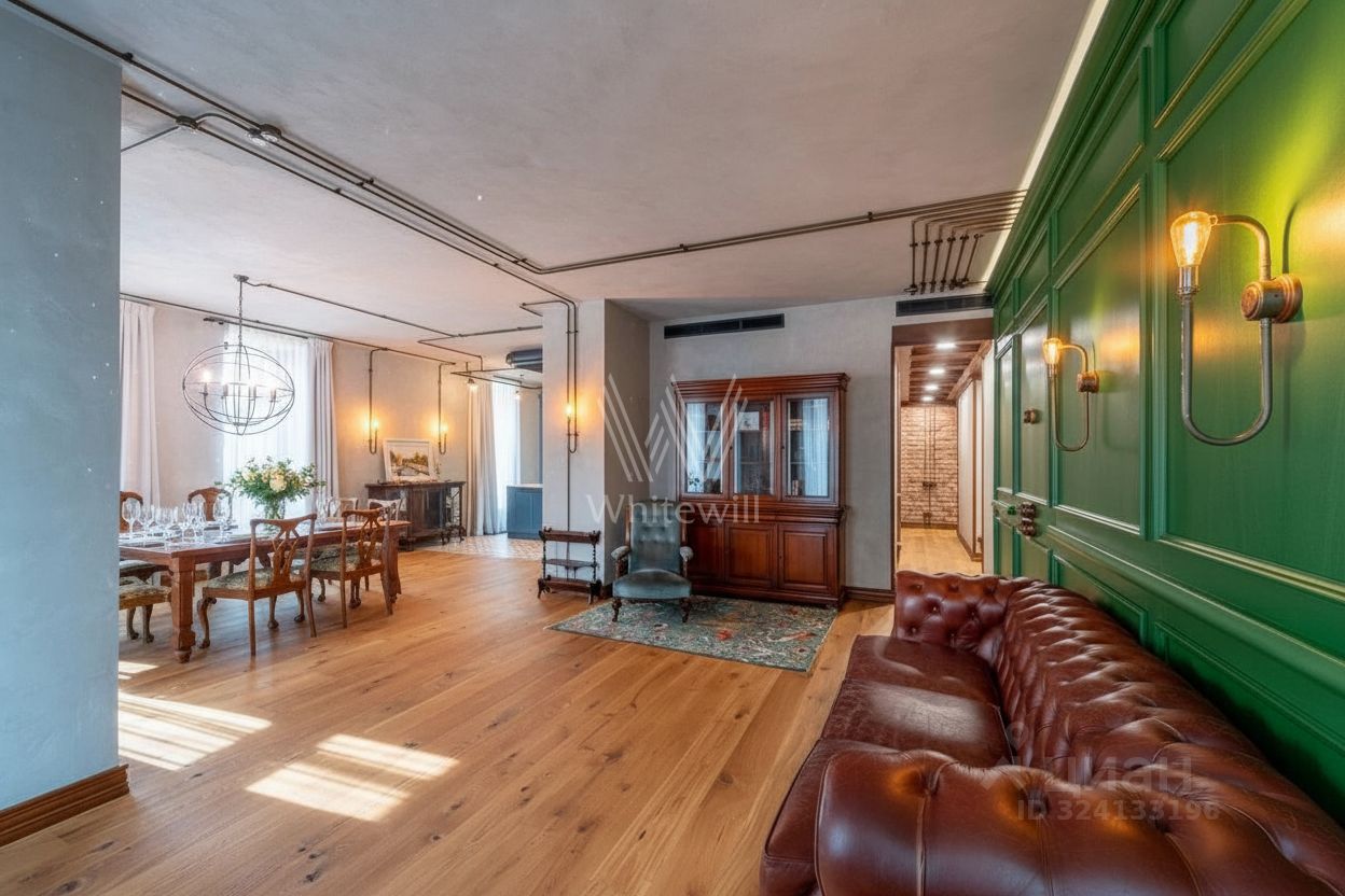 Квартира с 3 спальнями в комплексе бизнес-класса Vander Park. Квартира площадью 181 м² расположена на 4 этаже. Выполнена авторская отделка с использованием натуральных материалов — дуб, керамика, текстиль. Произведены работы по дополнительной шумоизоляции. Установлены приточно-вытяжная система вентиляции Enervent, радиаторы Varmann, умный дом, система очистки воды и медная электропроводка Petrucci. На кухне встроенная бытовая техника: Miele и Neff, винный шкаф Liebherr. Квартира укомплектована антикварной мебелью из Англии.