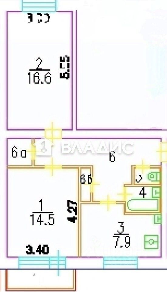 Общая площадь квартиры составляет 53,4 кв. м, из которых 31,1 кв. м — жилая площадь, 7,9 кв. м — кухня. Высота потолков — 2,7 м. Две изолированные комнаты с площадью 16,6 кв. м и 14,5 кв. м обеспечивают комфорт и уединение. Окна выходят во двор, а балкон добавляет дополнительное пространство для отдыха.