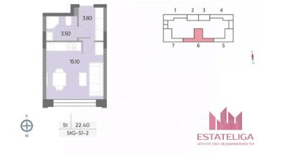 — Общая площадь: 22,4 м²