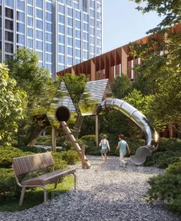 - На территории: дворы без машин, собственные бульвары, зоны отдыха, спортивные площадки, воркаут, коворкинг, городская гостиная, кафе и сервисы для жителей.