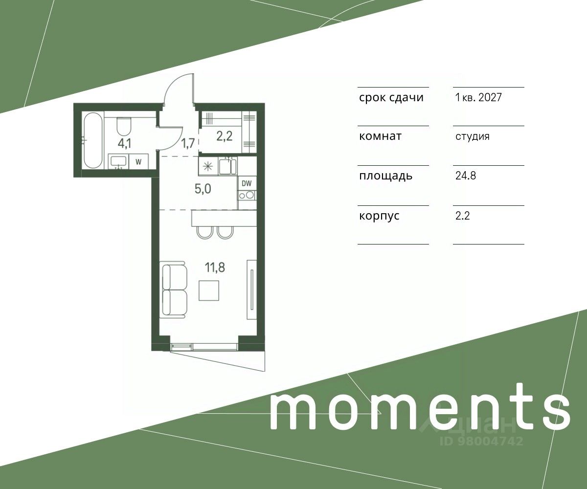 Продается студия номер 1061 общей площадью 24.8 кв.м. на 15-м этаже 34 этажного дома, корпус 2.2. С отделкой White Box.