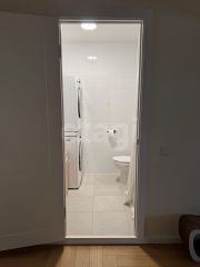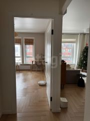 - ремонт от застройщика + сделаны изменения (ламинат 12 мм укладка ёлочка, в санузлах заменили напольную плитку, установили бойлер на 50 литров и гигиенический душ, заменили раковину и кран, делали для себя, сил и денег не жалели)