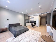 В апартаменте есть зонирование кухонной и общей зоны, предусмотрено рабочее место, спланирован большой санузел, много места для хранения. Все оформлено с вниманием к деталям, что подчеркивает функциональность и эстетическое восприятие пространства. Апартамент-студия полностью меблирован, а на кухне установлена современная техника, что позволяет вам сразу заехать и наслаждаться комфортом. Санузел оборудован качественной сантехникой, что добавляет дополнительный уровень удобства.