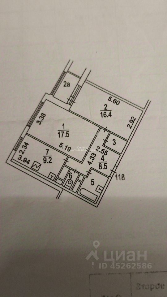 Изолированные комнаты 17,5 м² и 16,4 м², кухня 9,2 м².