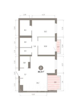 Квартира с кухней-гостиной и двумя спальнями в квартале "МОНС". Особенности планировки: разнесённые спальни, предчистовая отделка, мастер-спальня, балкон.