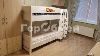 Большим преимуществом будет двуспальная детская кровать (двухуровневая), кабинет с огромной гардеробной и очень удобная кровать с ортопедическим матрацем.