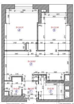 Кухню-гостиную 18,6 кВ.м., две изолированные спальни 14,3 и 12 кВ.м., гардеробную 2,4 кВ.м. и совмещенный санузел 5 кВ.м.