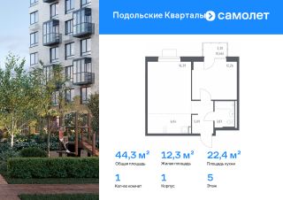 Строим кварталы для жизни с заботой о будущем. Предлагается 1-комнатная квартира комфорт-класса 44,31 кв.м в корпусе 1 на 5 этаже, в ЖК "Подольские Кварталы"