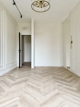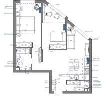 Чёткое зонирование: кухня-гостиная, мастер-спальня, вторая спальня (либо кабинет) и ванная комната, гардеробная.