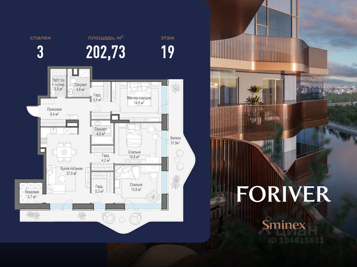 Прямая продажа от застройщика. В жилом квартале, расположенном в Даниловском районе Москвы, продаётся 3-комнатная квартира площадью 202.73 кв.м без отделки. Квартира расположена на 19 этаже 19-этажного дома, корпус Line 4, в жилом квартале бизнес-класса Foriver.