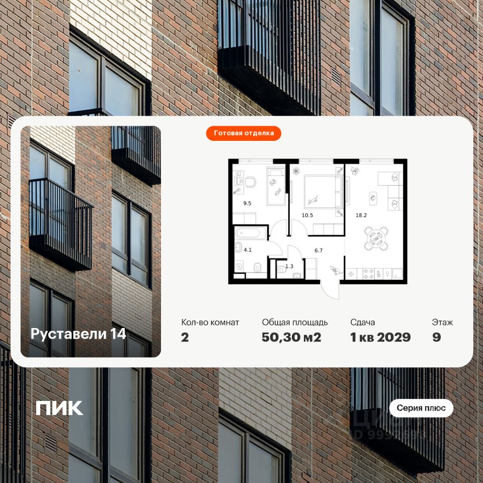 Продаётся 2-комн. квартира площадью 50,3 кв.м на 9 этаже 16 этажного дома (Корпус 3.6, Секция 2) проекта ПИК Руставели 14. Светлый просторный подъезд на уровне земли, функциональная планировка, большие окна, c отделкой.