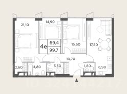 Возможная планировка: кухня-гостиная, мастер-спальня со своим санузлом, две отдельных спальни/кабинет, совмещенный санузел, отдельный санузел или гардеробная.