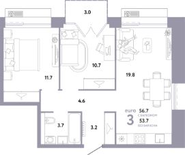 Общая площадь56,7 м²