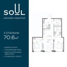 Продается 2-к. квартира номер 688 общей площадью 70.6 кв.м. на 10-м этаже 24 этажного дома, Корпус 9. С отделкой White Box Max.