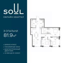 Продается 3-к. квартира номер 642 общей площадью 81.9 кв.м. на 7-м этаже 24 этажного дома, Корпус 9. С отделкой White Box Max.